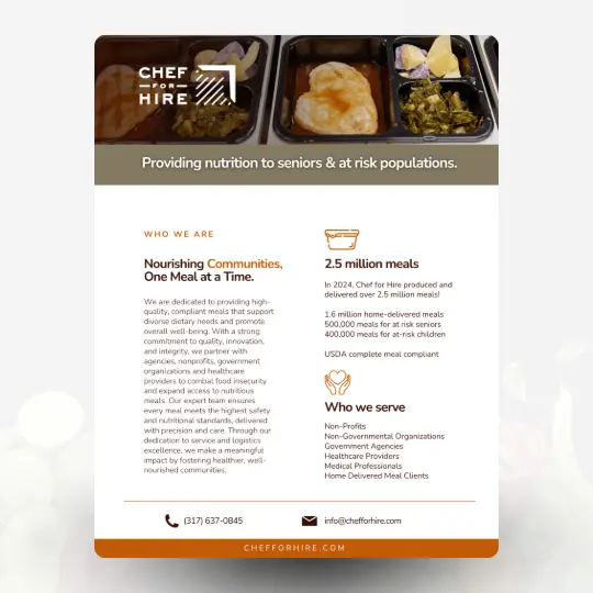 Chef For Hire, a leader in providing nutritious, compliant meals to communities across Indiana, set out to elevate their digital presence and expand their reach. Through a strategic partnership with RB Consulting, Chef For Hire launched a modern, user-friendly website that not only enhanced credibility but made it easier for clients to explore services and connect with their team. This digital transformation laid a strong foundation for long-term growth and improved brand visibility.