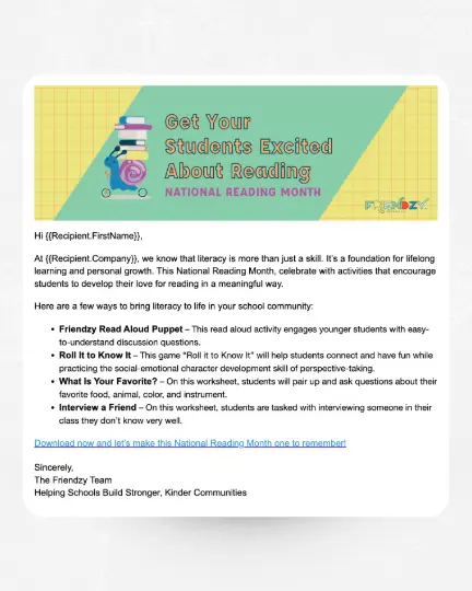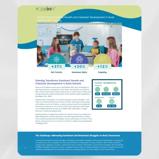 Friendzy is a leading provider of character education and social-emotional learning (SEL) curriculum for K-5 schools, equipping educators with research-backed programs that foster emotional intelligence, resilience, and positive school culture. With a mission to develop the whole child, Friendzy integrates engaging lessons, interactive activities, and real-world applications to help students build strong interpersonal skills and lifelong emotional well-being.