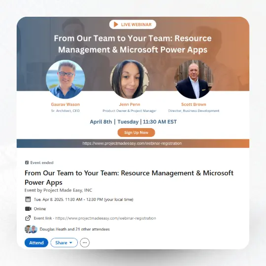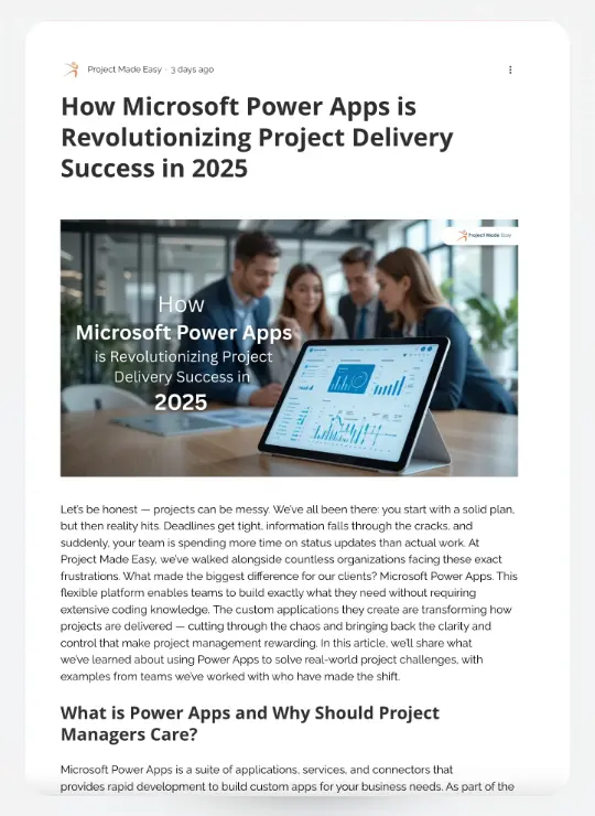 Project Made Easy is a technology solutions provider specializing in streamlining project and portfolio management through innovative Microsoft-based applications. Their solutions help organizations centralize project data, improve collaboration, and enhance decision-making by integrating seamlessly with existing project management tools